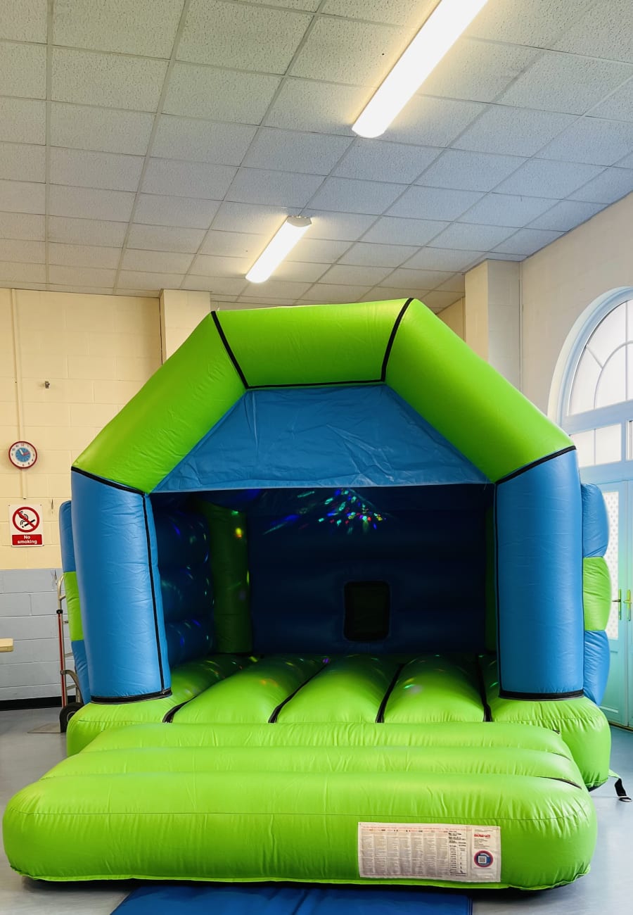 Our main service Green and Blue Disco Castle in Bicester, Kidlington, Thame, Brackley, Banbury, Oxford, and Surrounding Villages ensures that your party needs are met with ease and convenience. We deliver and set up the castle at your desired location, allowing you to focus on enjoying the party. Our professional team takes pride in offering a seamless rental experience, ensuring that the only thing you need to worry about is having fun!