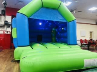 Make your next event unforgettable with the Green and Blue Disco Castle. Book today and let the party begin! 🎶