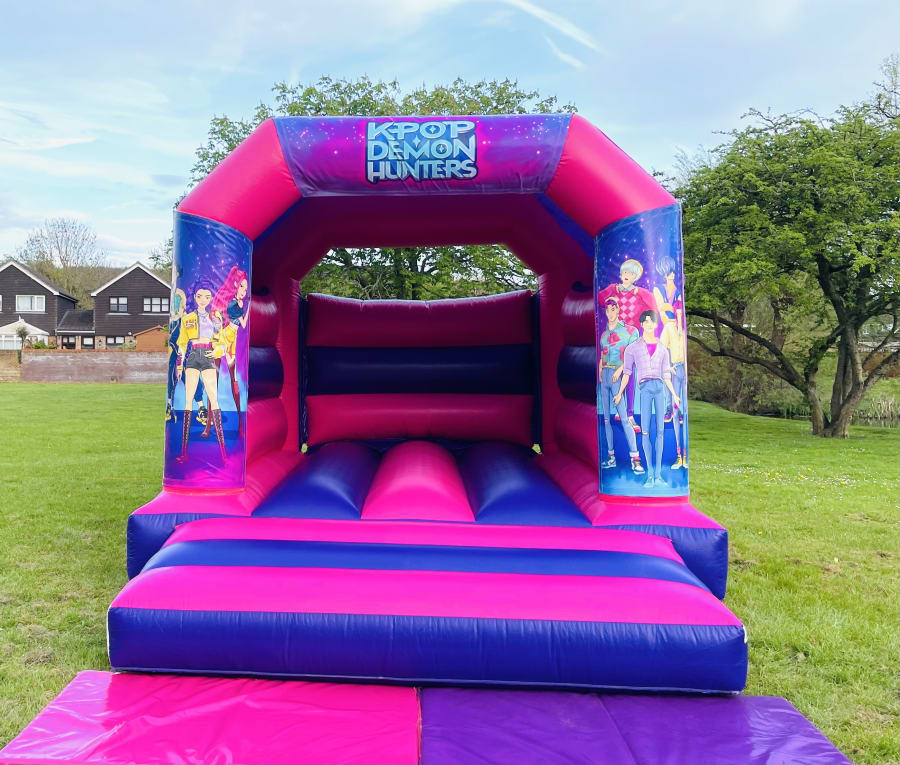 Bouncy castle hire K-POP Castle in Bicester, Brackley, Oxford, Thame. Excite your guests with the K-POP Demon Hunters Bouncy Castle. Bright colours, safe design, and a K-pop theme make every party pop. Ideal for birthdays, school fairs, and community events. Fast setup. Reliable service. Memorable fun. πΊπΆ