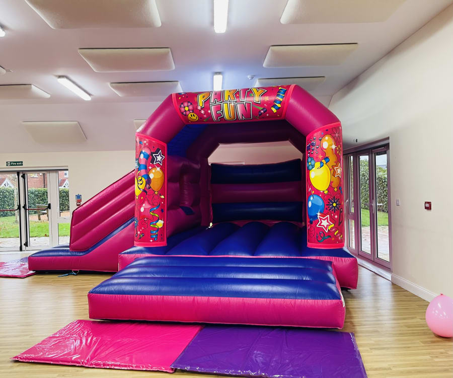 Don't miss out on the opportunity to enhance your party with a splash of color and excitement. Book the Party Fun Pink/Purple Castle with Side Slide today and let the magic unfold at your next event! 🎊